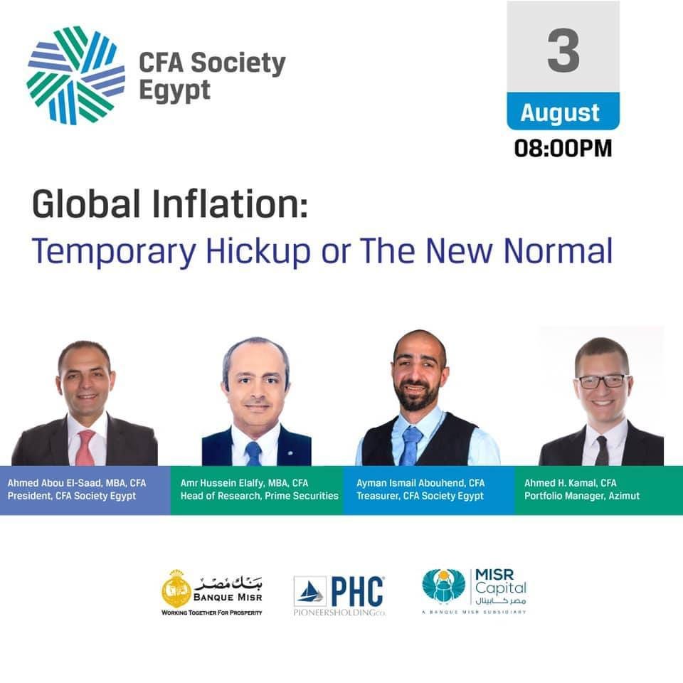عمرو حسين الألفي، CFA، MBA، رئيس قسم البحوث بشركة برايم لتداول الأوراق المالية، يشارك في هذه الندوة الافتراضية تحت رعاية الجمعية المصرية لخبراء الاستثمار (CFA Society Egypt) عن التضخم العالمي.