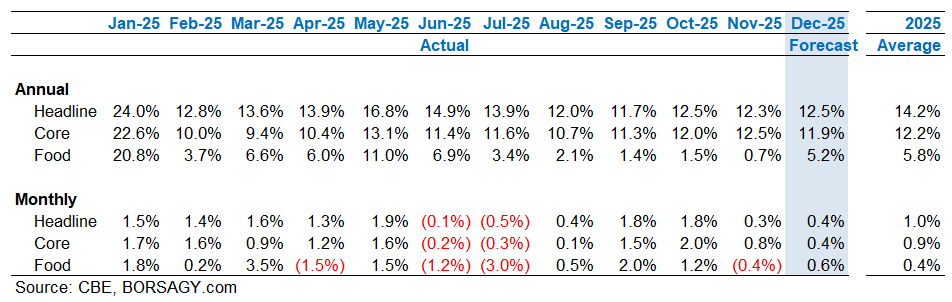 Below is my personal forecast for Egypt’s inflation reading for December 2025 and the year 2025.